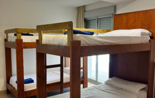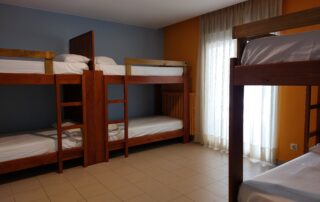 Contamos con habitaciones mixtas y compartidas de 6 personas y de 4 personas. Un baño compartido cada dos habitaciones. No contamos con sala o cocina de uso común. Las camas son cómodas literas de 90 cm, y aunque NO incluimos sábanas ni toallas, ofrecemos servicio de alquiler para que no te falte nada: 3,50€ cada juego de sábanas y 2,50€ cada toalla. Además, tenemos diferentes opciones de régimen de alojamiento: pensión completa, media pensión o solo desayuno.
